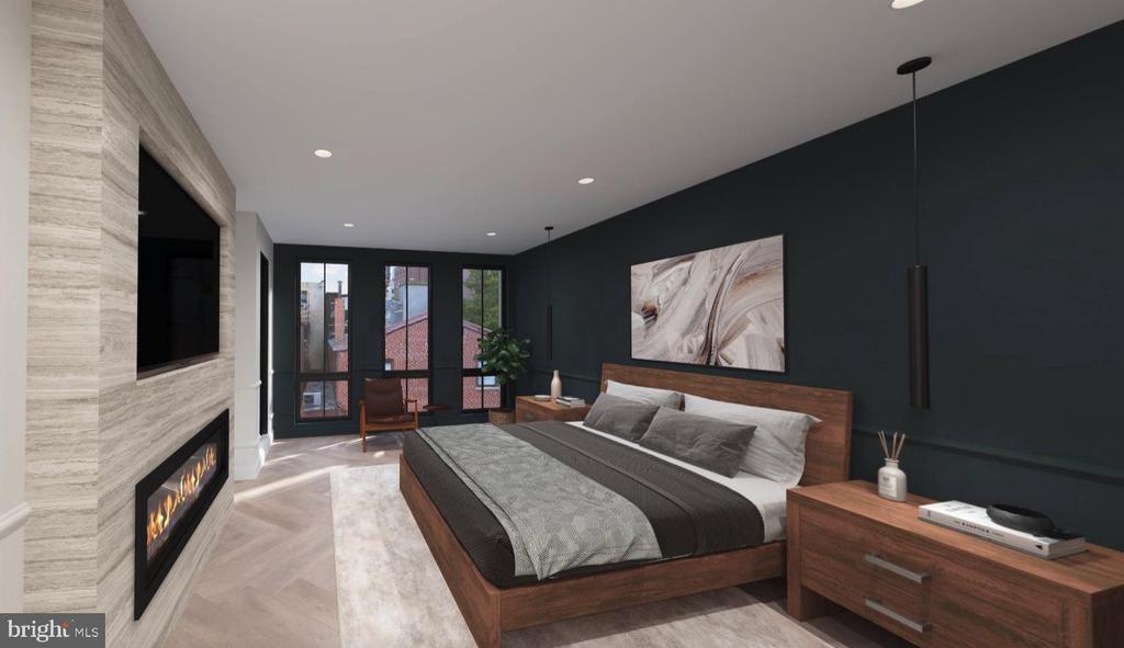 The interiors are lovely, with herringbone wood floors and architectural flourishes throughout, while allowing for a modern layout in the heart of Rittenhouse. Muted and elegant is the approach here, all topped with some fantastic city views.