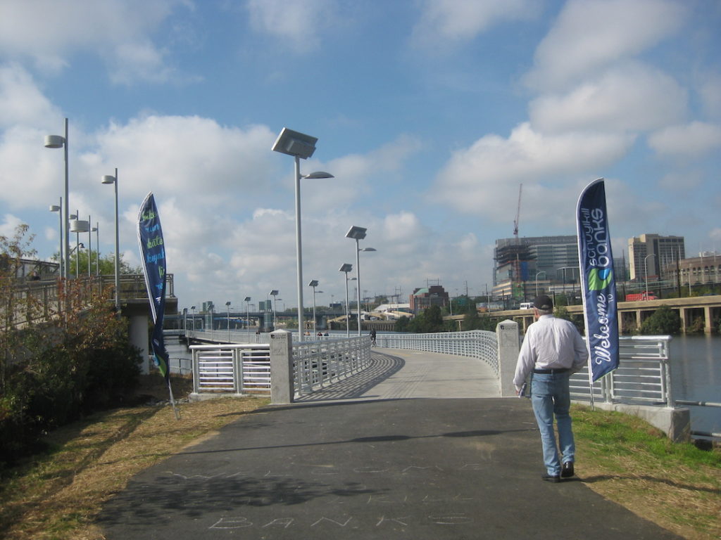 A couple months ago, we got a visit from an old friend who grew up in the area but hadn't really walked around Philadelphia in a long time. After showing off South Street West (it's different from the other side out South Street, which is different from what it was like back in the day) and the Piazza, we took a jaunt to the Schuylkill River Trail. He was in awe. And you know what, he was right to be impressed. The park is one of the best things to happen to Philadelphia in the last twenty years, impressively bringing us closer to a river that's cut off from Center City by railroad tracks. And as you've probably heard, the trail just got a 2,000 foot "floating" extension, from Locust Street down to the South Street Bridge.