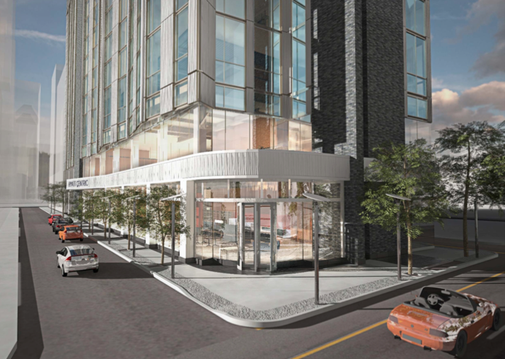 The CDR presentation is chock full of information about the project, reiterating some of the info that we had previously and detailing some of the changes the project has undergone. As we told you before, the hotel operator has switched from Hudson Hotel to Hyatt Centric, a brand that focuses on urban locations. Though the exterior design has changed some, the building will still rise 13 stories and include 309 rooms, with underground parking and retail on the first two floors. A rooftop restaurant concept has been removed, which is a bit of a bummer. Still, we'd argue that the new building will look pretty sweet.