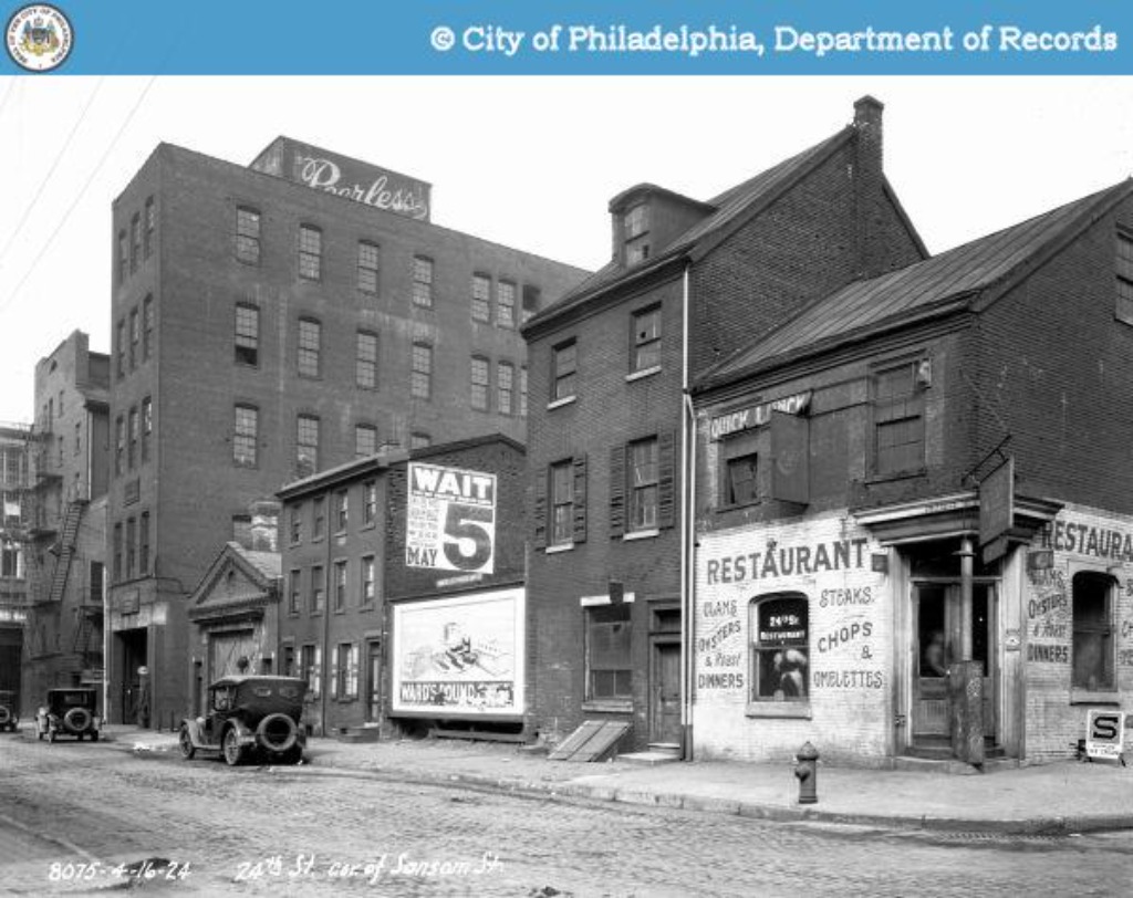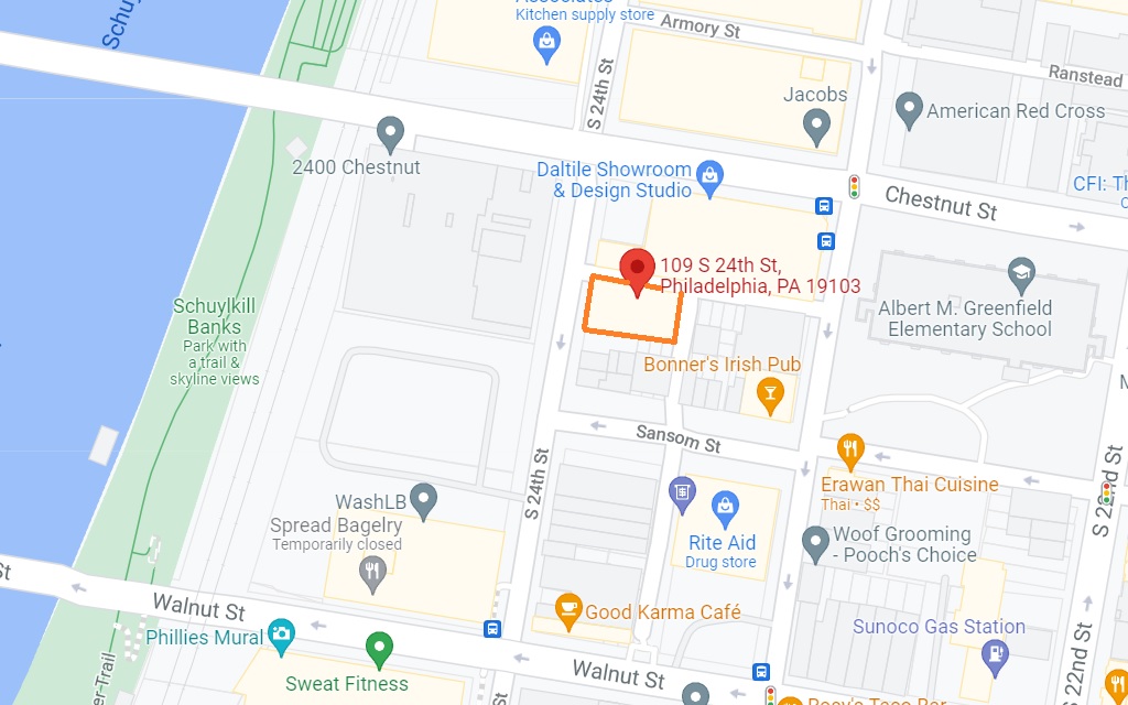 109-115 S. 24th St. finds itself tucked away in a curious nook in the Rittenhouse neighborhood. While sitting in close proximity to some of the poshest areas in town, this little section maintains a bit of its grittier past, with the Furness-designed Baltimore & Ohio Rail Station built in 1888 just steps away. When this elevated station went up next to the Chestnut Street Bridge, it was built on stilts, essentially making 24th Street a lower level rather than an adjoining street. Sadly, service was halted in 1958, and a fire resulted in its demolition in 1963. Today, this property has 2400 Chestnut St. looming over it and a seemingly permanent construction site in the street immediately to the north which will ostensibly get cleaned up once construction finishes on the Chestnut Street bridge.