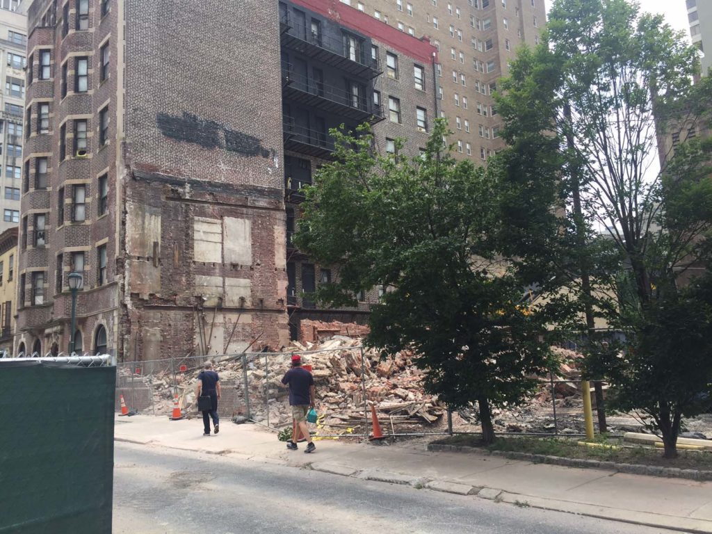 Developers have been trying to demolish the historic former Oliver H. Bair Funeral Home at 1918-20 Sansom St. for years, and Southern Land Company has finally succeeded where others have failed. This property, along with the neighboring Warwick Apartments and Rittenhouse Coffee Shop buildings, has been in the demolition cross hairs for years because it’s associated with 1911 Walnut St., Philadelphia’s most embarrassing and most desirable vacant lot.