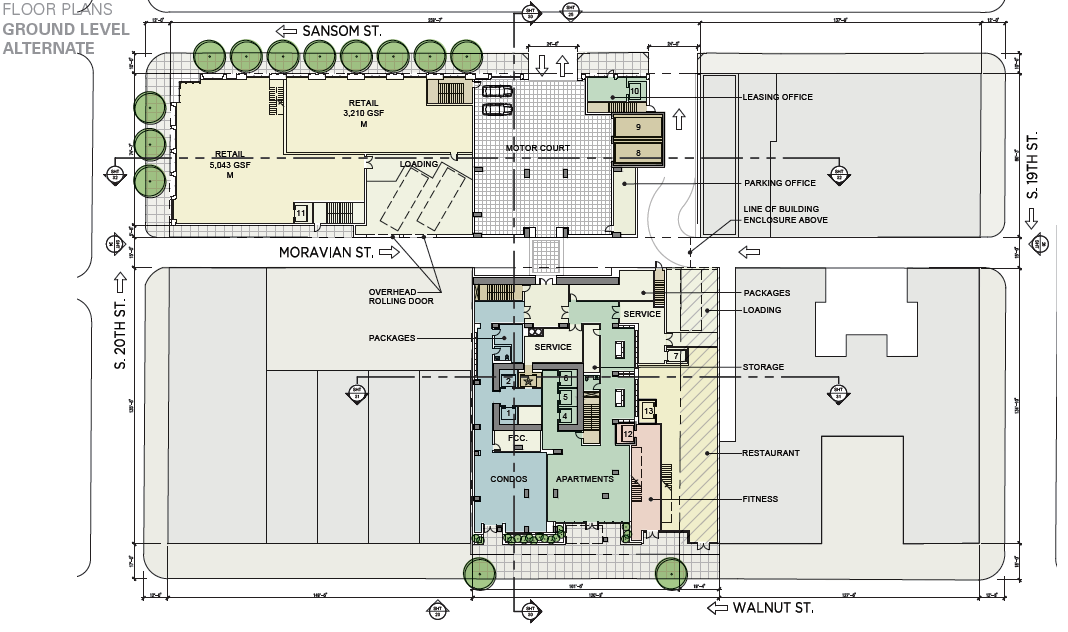 Our only complaint is that it will apparently entail the demolition of two long-vacant historical properties on the 1900 block of Sansom Street. The Rittenhouse Coffee Shop, which we wrote about several years ago, will apparently survive, but a former funeral home and the Warwick apartment building are slated for destruction. We'll see whether preservationists and the community dig in to try to save those buildings, or whether the excitement of a huge new building will reduce opposition. Even with the buildings on Sansom Street creating some uncertainty, we're pretty confident that this thing is gonna happen in some form. And when it finally does, one of Philadelphia's most prominent vacant lots will get redeveloped at last.