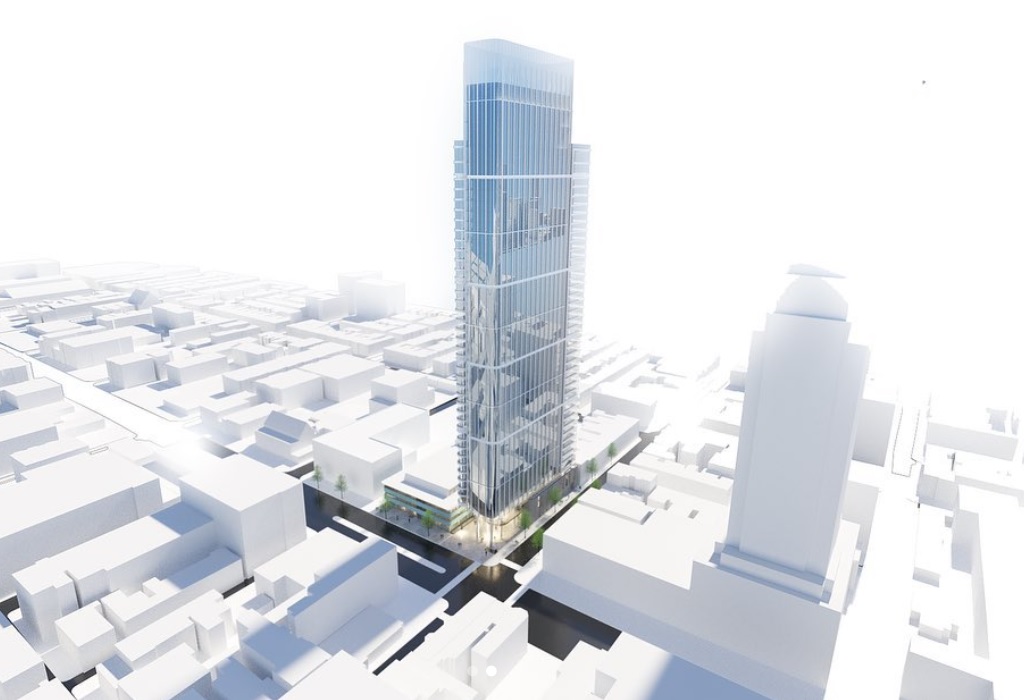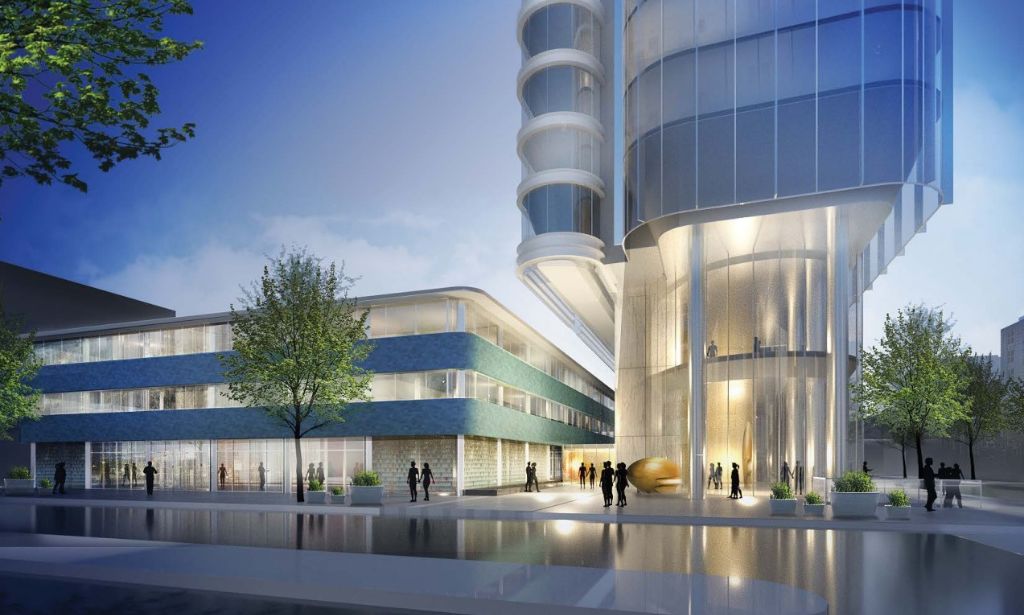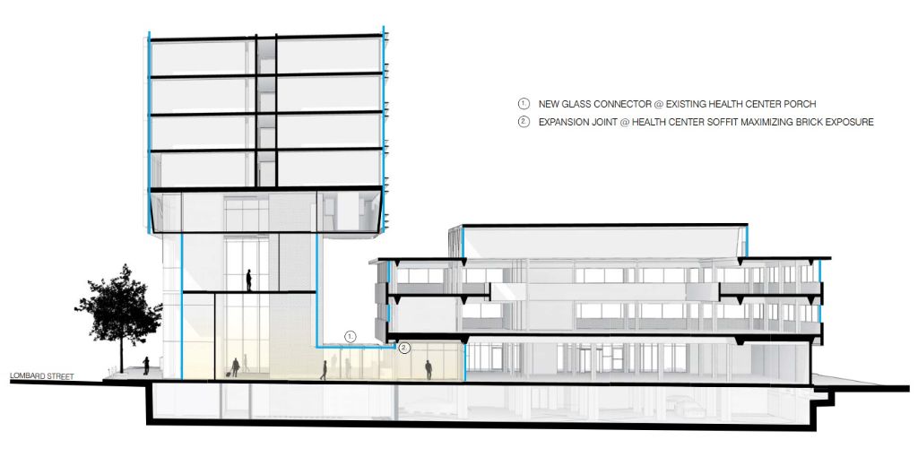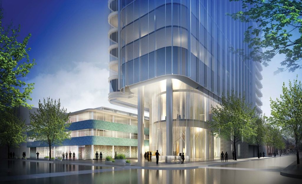 While you may be sad to know that the concept has changed, this news is far from upsetting. We don’t see any signs of a hotel in the works, but what we do see is a 43-story, 542-foot tall tower coming our way from SITIO architecture + urbanism with the rehab to the Health Center handled by Voith & Mactavish Architects. This modern, curved high-rise will sit directly next to the historically protected building in the middle of the lot, with a small connector between the structures creating a pedestrian plaza. 468 units would fill the apartment building, and we assume there will be amenities aplenty here. But enough talking, let’s check out what’s proposed.
