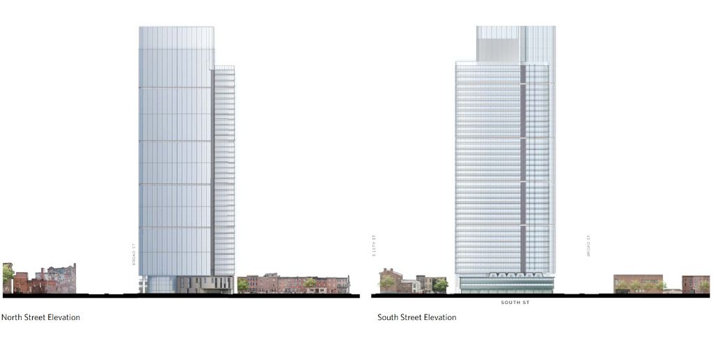 It was just this past March when we speculated that something big was coming our way from Goldenberg Group at 500 S. Broad St., as we shared renderings for a two-tower project which would be anchored by a Virgin Hotel. This came several years after an initial concept for the site was proposed, which included a glassy tower to the northern side of the lot. While we were thrilled to hear new details, we weren’t exactly sure if this was still conceptual or a little bit more. Now, thanks to a submission to the Historical Commission, we have additional clarity about plans for the property.