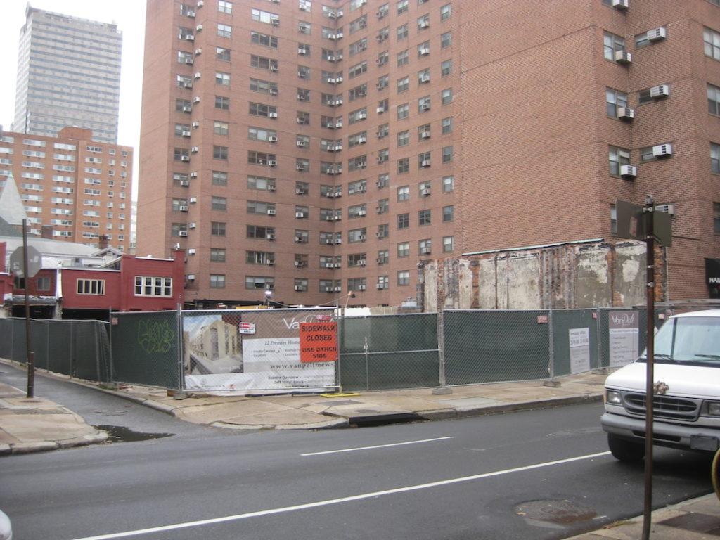 It was more than a year ago that we first broke the news that a bunch of new homes were soon to rise on the 2100 block of Walnut Street at the intersection with Van Pelt Street. Back then, developers from Conservatory Group USA had presented plans for the construction of nine new homes to the Historical Commission and were generally met with support. In the time since, they've demolished a one-story furniture store and an old surface parking lot, preparing the site for development.