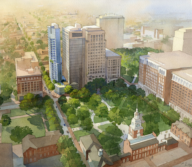 The building is probably about a year away from completion, but at least half of the units are already under agreement. So if you're looking to move to Society Hill, have a few million bucks burning a hole in your pocket, and have always wanted a view of Independence Hall from your living room, your opportunities are dwindling! Okay, we've convinced ourselves, we're gonna go buy some Powerball tickets.