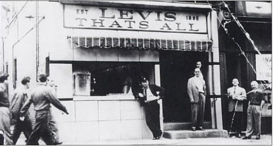 Levis hot dogs in what appears to be the 1940s. We’re also guessing that one of these guys is old Abe himself
