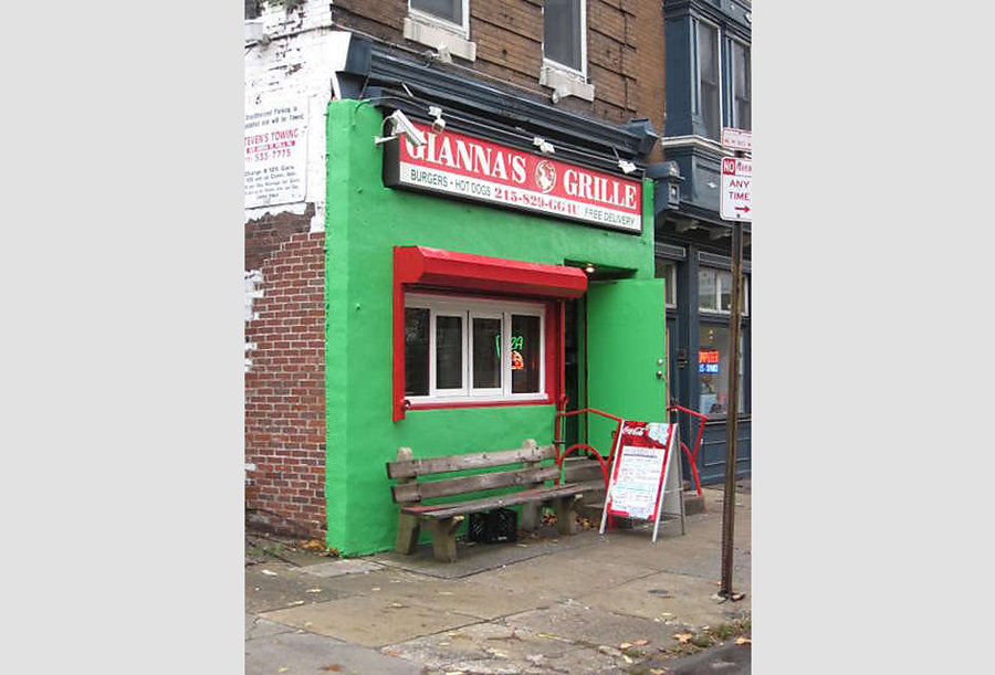 In spite of the shifting neighborhood around it, Levis remained steadfastly in place for the next 30 years, though reports suggest its once great dogs had begun to decline in quality toward the end. Finally, in 1990, the family sold out to a soda merchant who was more interested in the restaurant’s Champ Cherry pop than its hot dogs. With the beverage acquired, the new owners closed its doors in 1992, just shy a century of service. By the end of the 1990s though, a popular new occupant had claimed the space. Gianna’s Grille plastered the walls with punk posters, dedicated half of its space to making Vegan desserts and gradually became a preferred takeout destination for the neighborhood’s younger residents. Gianna’s is shown here below in an image taken from Urban Spoon.