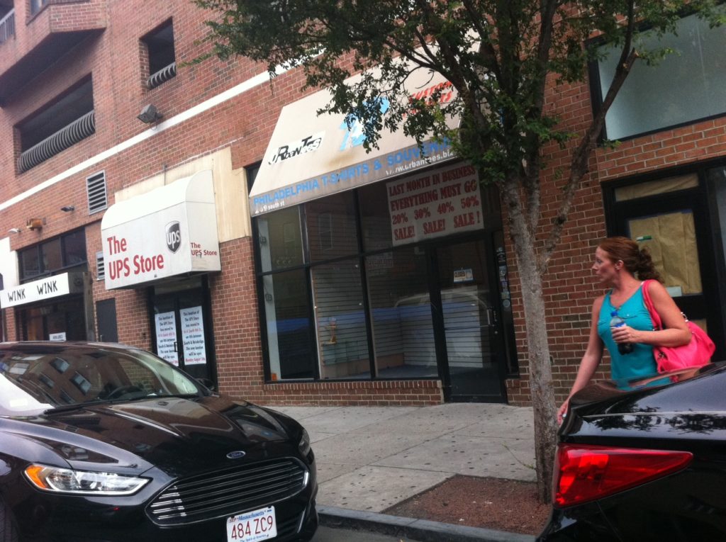 The bottom of Abbotts Square on the 200 block of South Street has mystified us of late. Most of the little stores on the block's north side have closed or moved in the last year, which has come on the heels of Chef's Market shrinking to a catering operation called Chef's Table. A few years ago, we heard rumors of a restaurant/banquet hall with live music coming to the block, but nothing seems to have come of those plans. But recently a reader tipped us off that a big new tenant is coming soon, explaining why the block looks so desolate at the moment.
