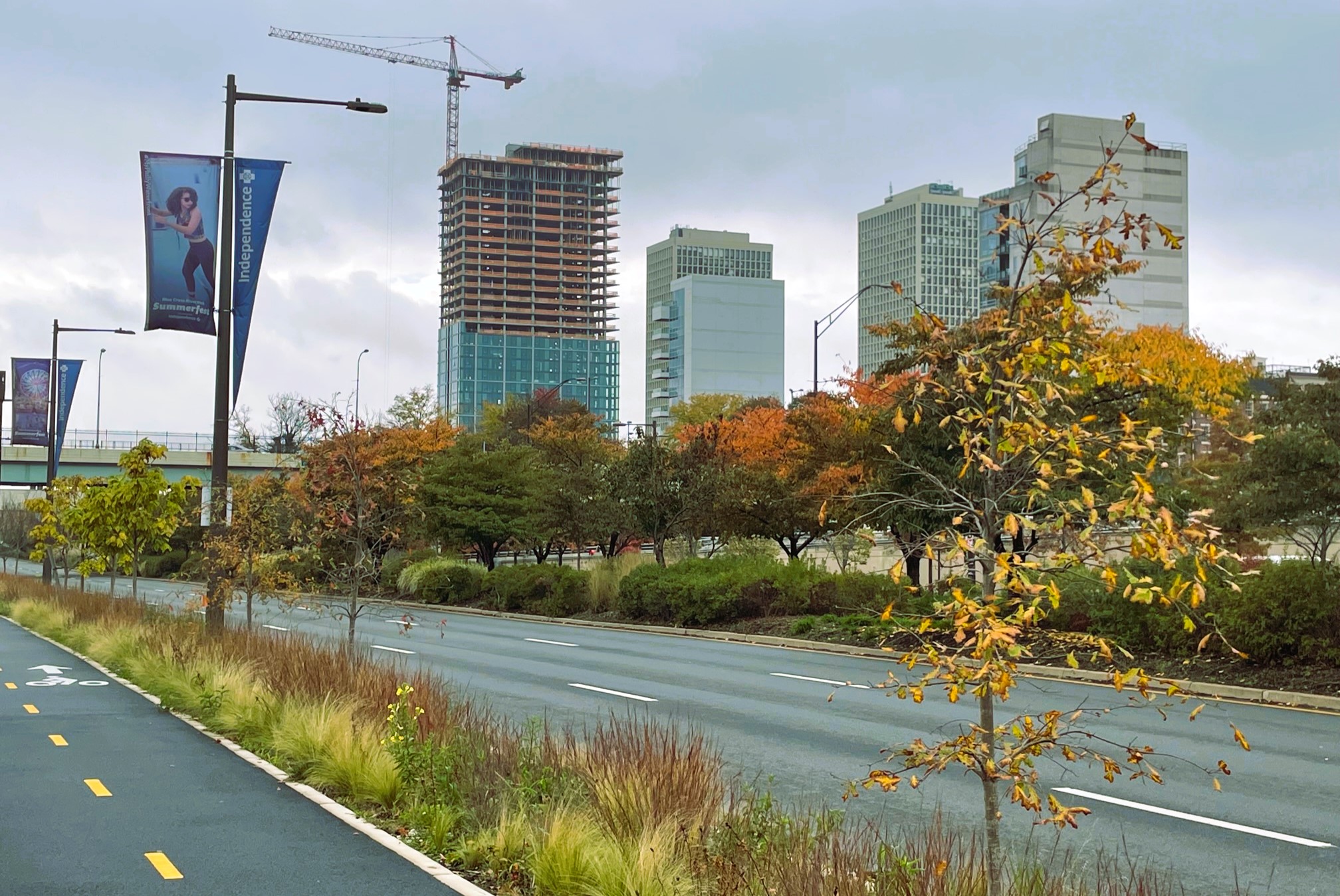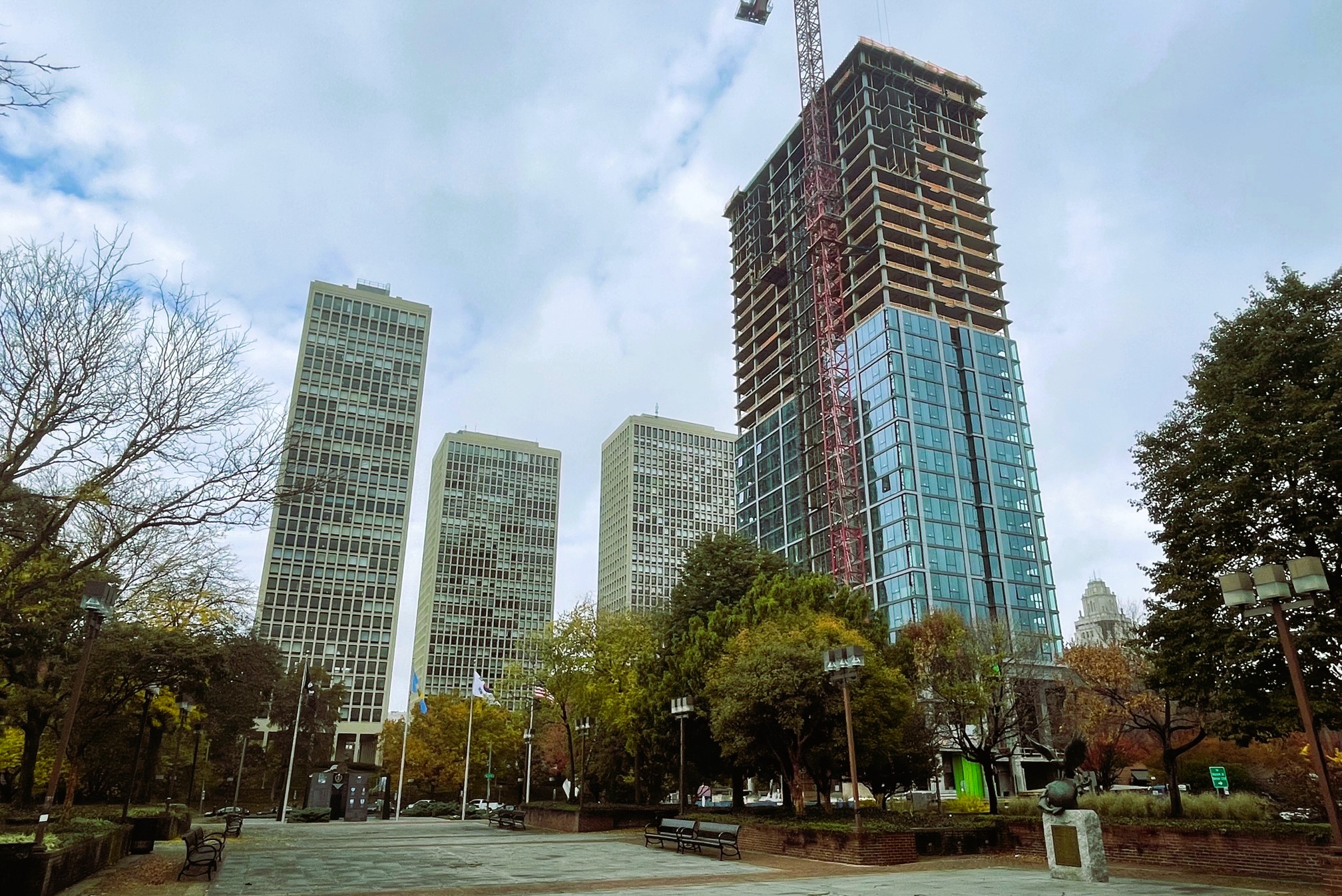 But as we said, quite a bit can happen over four years, and things are looking wildly different here now. This building is quickly reaching full height, joining the iconic, I.M. Pei-designed Society Hill Towers, creating a new vibe for this skyscraper cluster on the eastern side of the city. The building already forms an impressive presence as one approaches it from the Delaware River Trail.