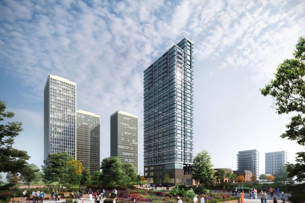 We last were by this site in 2018, when the Buccini/Pollin Group had purchased what was then the Society Hill Sheraton, with eyes to fix up the hotel and add a 31-floor residential addition to the vacant southern end of the site. But as you know in this crazy world of real estate, things can change greatly in the span of four years. Since then, the property changed hands yet again, with LCOR purchasing the site back in 2020. After several rounds of pushback, vetoed bills, and court dates thanks to major pushback by some near neighbors for what was supposedly a by-right project, approvals were finally OK’ed for a new apartment tower, featuring 272 rental units for this purely residential addition. As you can see, the design from BLTa called for a glassy, contemporary tower rising nearly 400′ against the existing four-story hotel (which, by the way, is now the remodeled Marriott Old City).