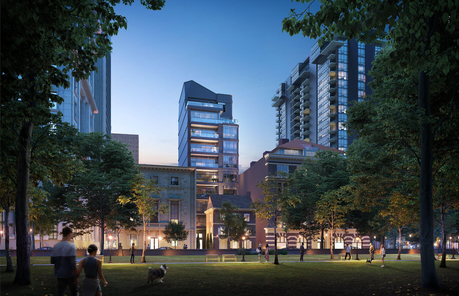As the crane shows, things are now full bore here. New owners Astoban Investments are leading the charge, with the plans calling for nine condo units in the project after a recent zoning notice. Astoban has plenty of experience with luxury developments, having been part of additions across the city. For this go-round, they will mostly be utilizing the existing design from Cope-Linder Architects, now a part of Nelson Worldwide. The designs will change slightly according to a recent interview, but the final design should look similar to what we see below, with a 20-car, underground parking garage a prime amenity for this luxury building.