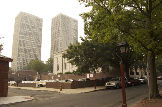 The area is a prime location: A half a block down from the Merchant’s Exchange Building and the beautiful park surrounding Carpenter’s Hall, with the Ritz 5 just around the corner. It’s at the intersection of 3rd and Willings, which is a quiet enclave despite being near Walnut Street. The front of the building faces the picturesque (and philanthropic) Episcopal Community Services, with the lofty Society Hill Towers in the background and mature trees lining the Society Hill block.