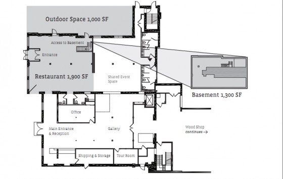 As it turns out, 3rd Ward released an RFP a week and a half ago, and is seeking an qualified restauranteur to “help create a vibrant cultural hub in … the neighborhood.” The winner of the bid will receive an $80K capital improvement budget, and will have about 3,200 sqft of indoor space to work with. That includes 1,900 sqft of first floor space, and 1,300 sqft of basement space. The restaurant will also have another roughly 1,000 sqft of outdoor space.