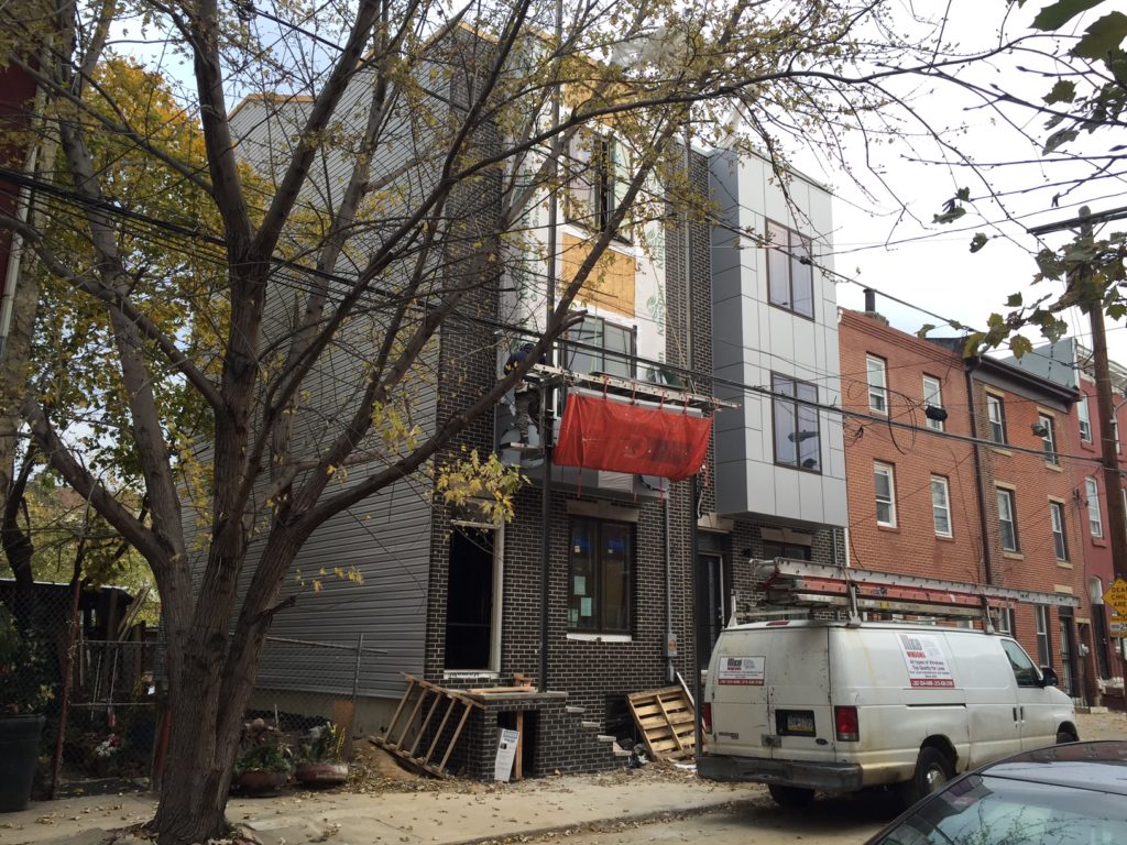 We were winding our way through South Kensington yesterday, fighting the early setting sun, and happened upon a pair of new homes on the 1400 block of N. Lawrence Street. Previously, 1428 and 1430 N. Lawrence St. were sitting vacant, even though most of the rest of this block is in pretty decent shape. There are now two homes on these lots, with 1428 N. Lawrence St. under construction and 1430 N. Lawrence St. finished. The latter home sold a couple months ago for $402K.