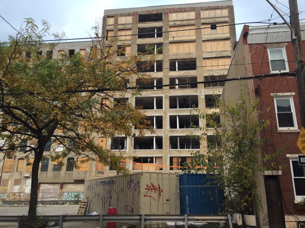 But we've buried the lede! Just around the corner from these new homes, we see that the former umbrella factory at 5th & Master is finally getting renovated after sitting vacant and blighted for a number of years. You may know, there was a plan for a residential conversion here back in 2006 which would have meant 141 condo units and a parking garage next door, but the project never happened because of the recession in 2008. About a year ago, we told you that Core Realty has purchased the property and we were optimistic that this would mean that the building would finally get renovated. Remember, this is the company behind the Penn Treaty Village Pennthouses and they know what they're doing when it comes to adaptive reuse.