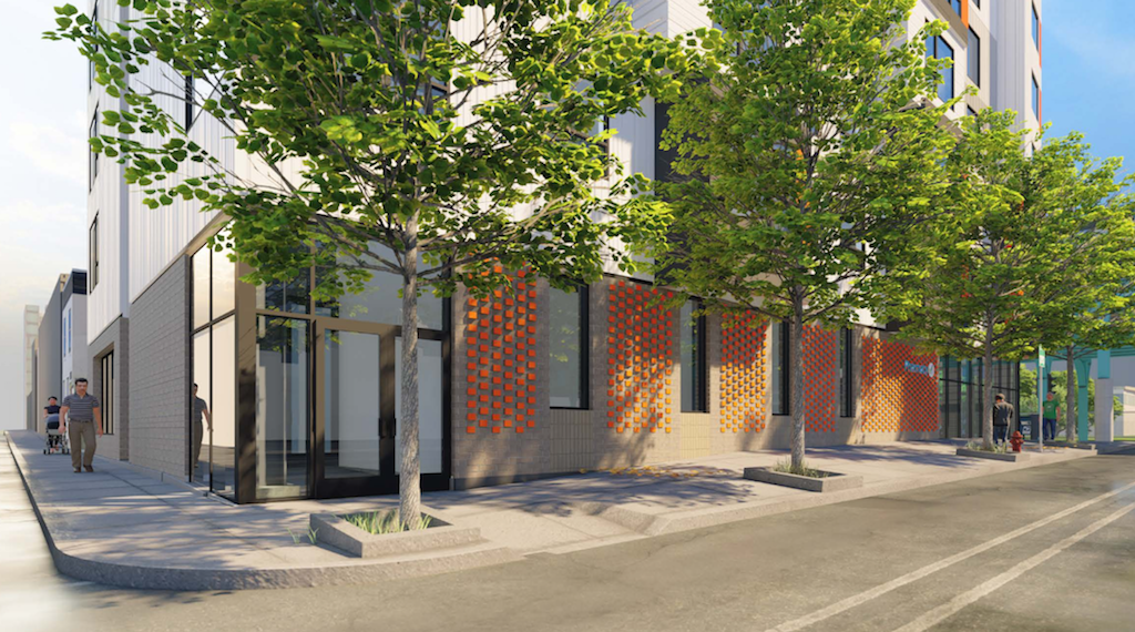 As for what will rise here, the Civic Design Review packet for the property indicates plans for a six-story mixed-use building. On the first floor, there will be a sizable commercial space, covering over 6,000 sqft. Project renderings indicate that this will be a pharmacy, but we couldn’t tell you for sure whether that’ll actually be the tenant. As for the rest of the building, look for 105 apartments, with five of those units being on the first floor and including private garden space. Also according to the CDR pack, the developers are taking advantage of the provision in the code that allows them greater density in exchange for providing affordability. Though they’re required to have 10% of the units renting at affordable prices, they will offer twice as many as required. So that’s cool.