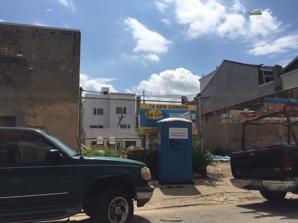 Developers associated with Solo Realty bought the building back in 2013, as part of an estate sale. A couple years later, they purchased the vacant lot next door, which has been owned by a City agency. Combined, the properties measure 40’x100′ and go street to street, which affords the owners a variety of redevelopment options. We’d have bet on demolition, but that’s not what’s happening. Instead, they’ve opted to renovate the old building at 1328 N. 5th St. and build a new building next door, combining them into a single residential building with 7 condo units. The design work, from Bright Common, is really quite striking.