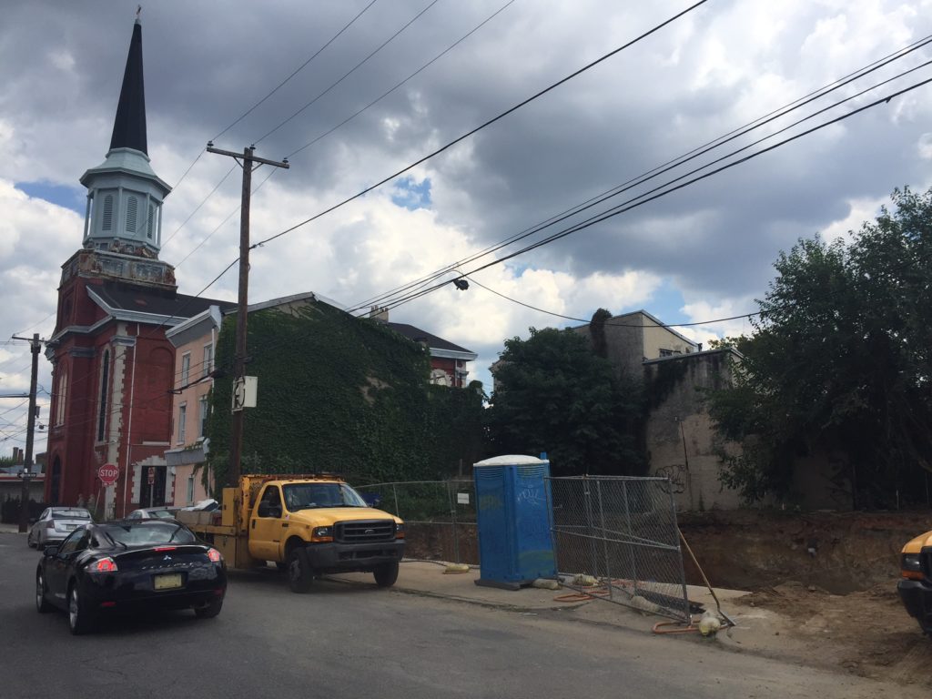 Fin Development LLC bought six parcels here over the last several years, acquiring most of them via sheriff's sale and at low prices. Late last year, they appeared before South Kensington Community Partners with a plan to rearrange the lot lines at this property and build six duplexes, a single family home, and a five-unit apartment building at the corner of Cadwallader Street and Cecil B. They got approval from the ZBA in December, and it appears they're now moving forward with the project.