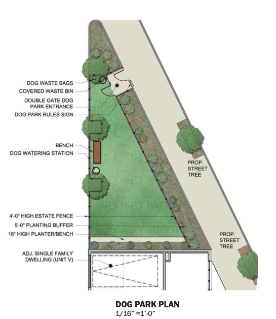 Perhaps most exciting about the project is that the developers plan to build a dog park on the site which will be maintained by the development but will be available for public use. Sure, with all those big vacant lots in the area today there's no shortage of places for people to walk their dogs. But as the community continues to evolve and those vacant lots continue to disappear, a formalized dog park will become an appreciated asset. And we've gotta tell you, we cannot remember another example of a development like this including a dog park in its plans. Very cool perk.