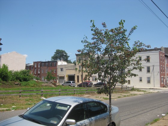 According to the zoning application, the developers intending to purchase this parcel wish to subdivide it and build eighteen three story single family homes, each with roof decks and parking. We would imagine that nine of the homes will front Palethorp Street, and nine of the homes will front Hancock Street. An easement that provides driveway access to the homes would, ostensibly, come out onto Jefferson Street.