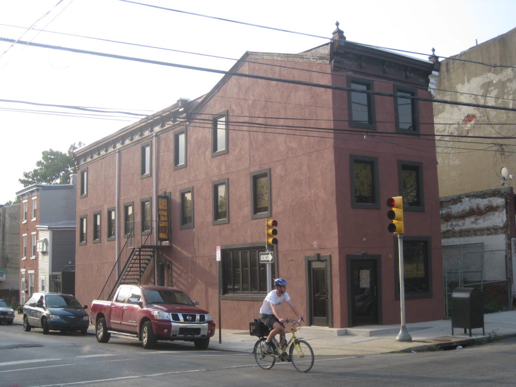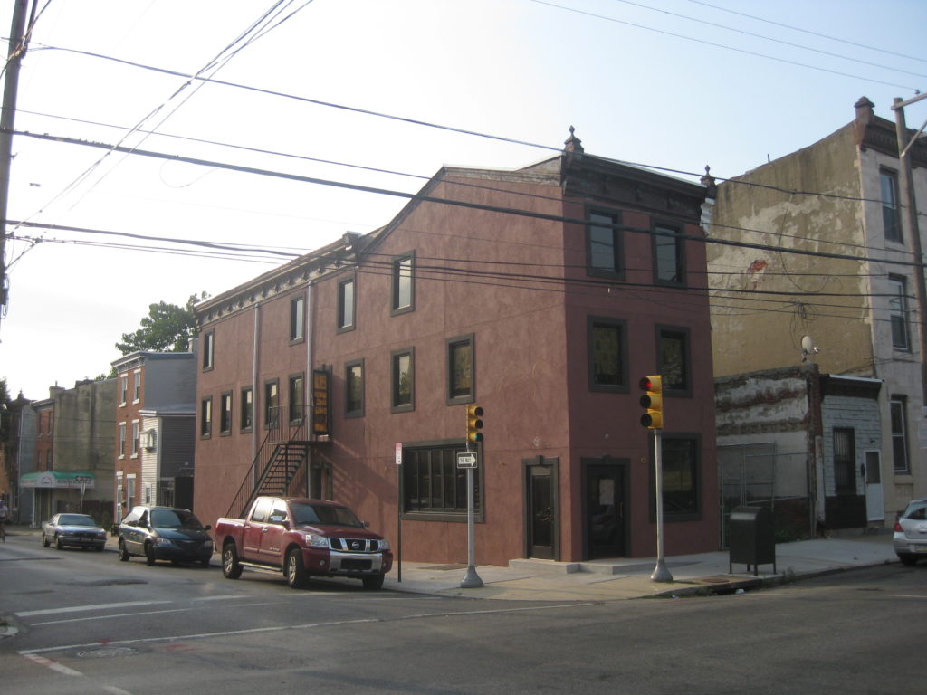 Previously, according to this thread on Philadelphia Speaks, this was the location of the El Presidente bar, an establishment that was quite a headache for near neighbors. As you can see comparing the photos above, the building looked pretty terrible back in 2009, with many boarded up windows and ivy growing up one of the walls. The exterior of the building has now been repaired, the windows replaced, and the ivy removed, and the building is looking really red these days.