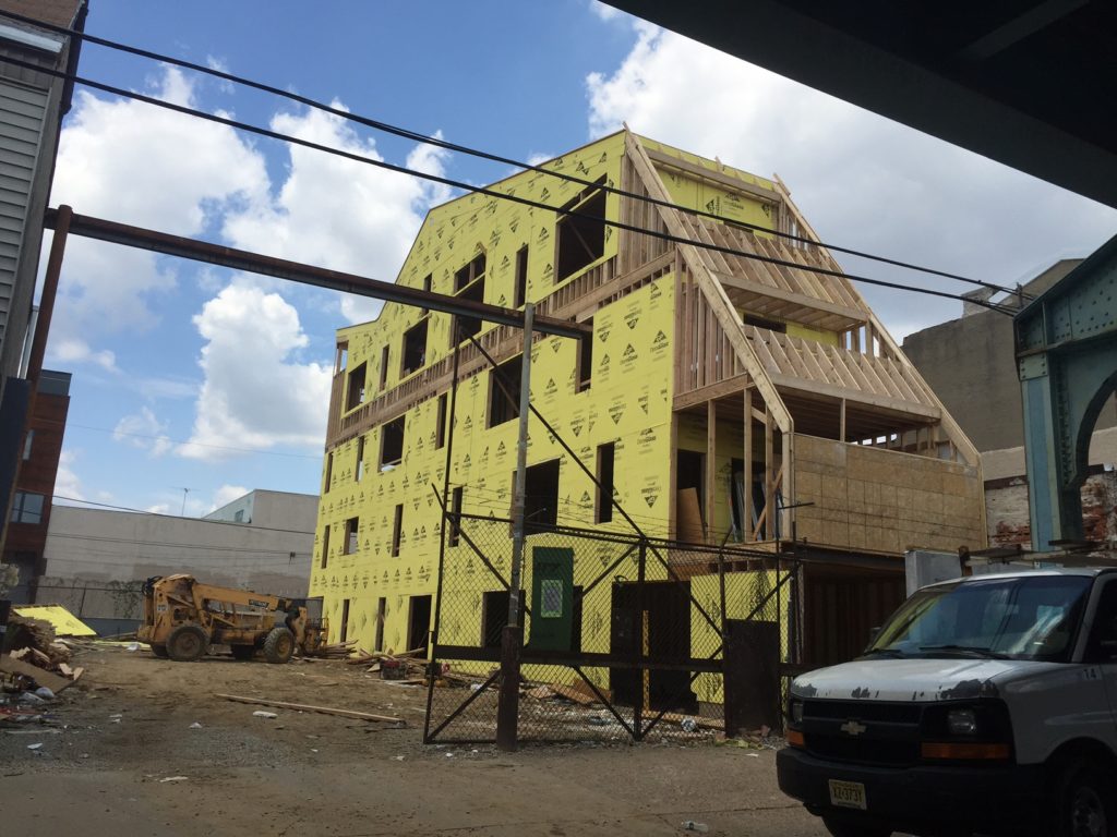 You can see, the slope of the building will allow for some balconies on the eastern side of the building but will provide some setbacks from the trains as they rumble past. In addition, a section of the building that has yet to be framed will provide the retail space, still available for lease, with some additional ceiling height and natural light. We get it that many people may not line up to live so close to the El, but perhaps the look of the building will get people a little more willing to look past that issue.