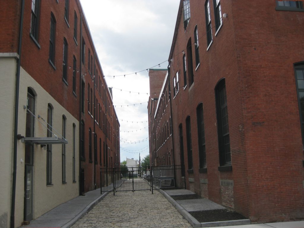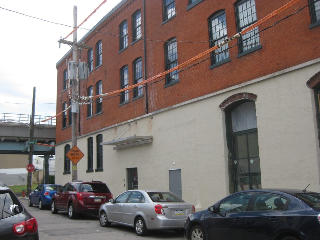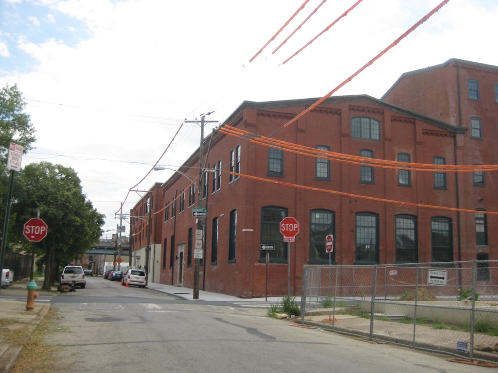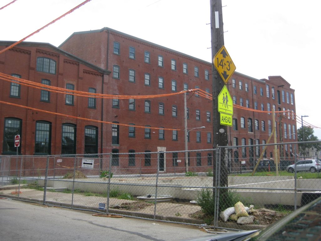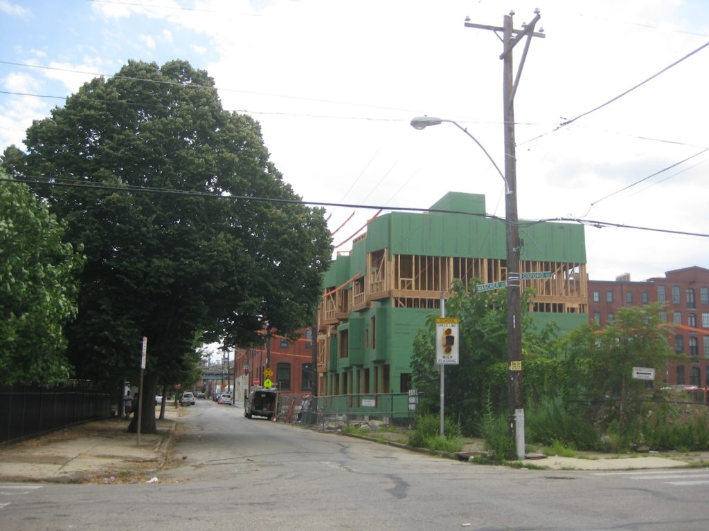 A self-fulfilling prophesy next door, new homes are already getting framed out on a long-vacant parcel. It's the beginning of a ten-home development from the same guys who did Oxford Mills. Would this kind of project be viable if the old warehouse was still sitting vacant? Maybe. But it certainly makes a great deal more sense with the renovation across the street. Look for this scene to be repeated all over the neighborhood as additional warehouses get a new lease on life. In due time, of course.