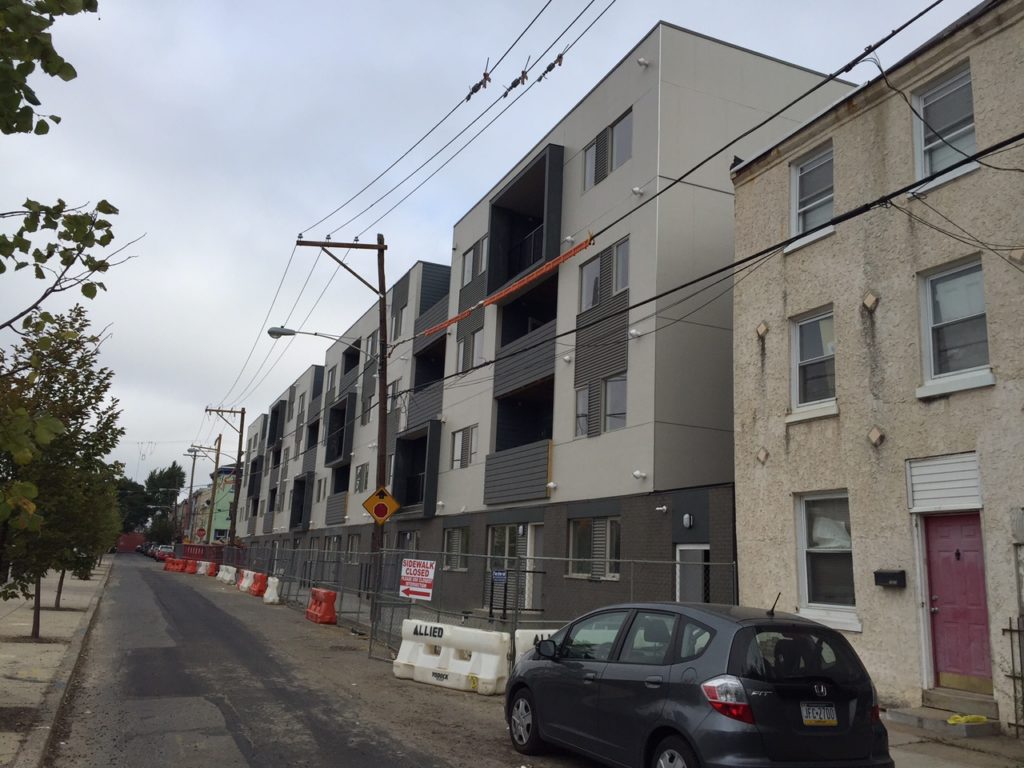 The project covers most of the triangle created by the intersections of Oxford St., Cadwallader St., and Bodine St., and contains 42 apartments, 37 parking spots for cars, and 28 parking spots for bikes. A partnership between the Arab American CDC and Conifer LLC, the Tajdeed Residences are an affordable housing project, and residents must meet certain income requirements if they wish to rent one of the units. We called the leasing office, and learned that 2-bedroom units are renting for $972/mo, 3-bedrooms for $1117/mo, and 4-bedrooms for $1250/mo. The specific income requirements depend on the number of people in each household.