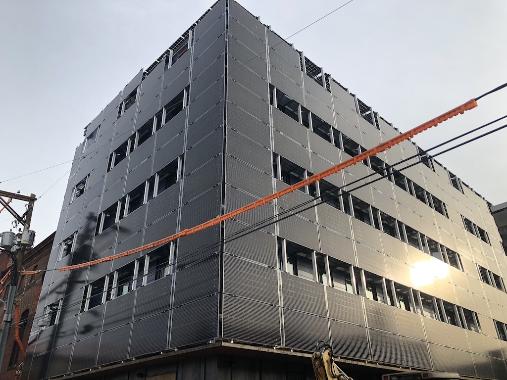 As prices continue to fall and as solar panel efficiency continues to increase, it stands to reason that we’ll see more and more construction that embraces solar technology. As developers go, Onion Flats has been one of the more forward thinking builders in terms of solar, having built a project called the Battery in Northern Liberties, featuring a huge solar panel array on the roof. Their newest project though, located at 1942 N. Front St., wants the Battery project to hold its beer.