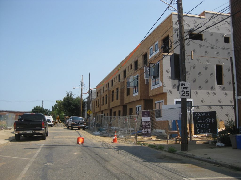 As we told you about previously, and as you can see in the image above, the project involves the construction of ten homes at 1323-33 N. Howard St. and eleven homes on the 1300 block of N. Hope Street. In the past, a large warehouse and some dilapidated homes were on this site, but those came down sometime last year. Presently, the homes on Howard Street have been framed out and remarkably seven have already been put under agreement.