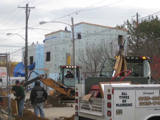 Last week, we gave you a brief update that the affordable housing development in Norris Square, at the Saint Boniface site, was finally moving along, with foundations prepared for seven new homes. In that story, we also suggested that the ten home project on Susquehanna St. that we had previously covered was also progressing, considerably more quickly. Today, we have some photos of these homes, which are all replacing vacant lots, and have all been framed out.