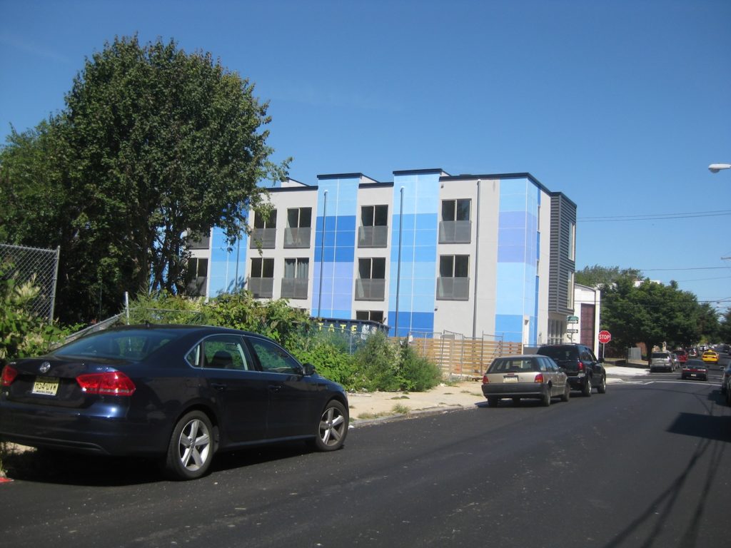 Last fall, we first told you about plans for development at the corner of 7th & Thompson. Out was a long vacant lot, in were four single family homes and a corner building with a retail space and two apartments above. When we passed by the site in January, framing was done and brickwork was underway. Visiting last week, we spied a project that's nearly finished.