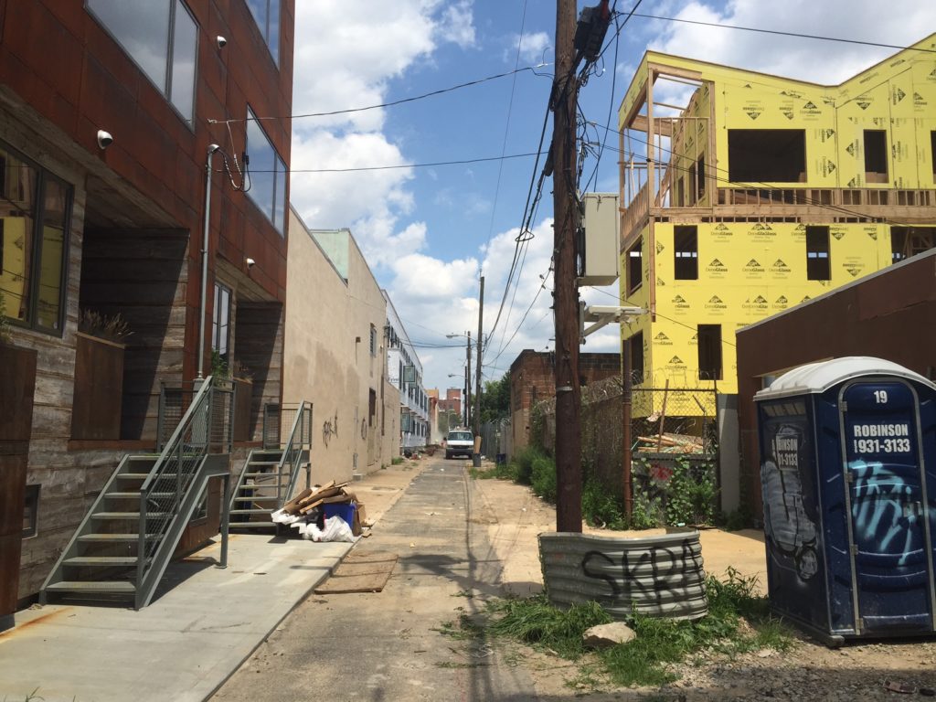 The second phase of the project is now moving along nicely. From Front Street, you can see eleven more homes on the 1300 block of Hope Street under construction. This view is only possible because there's a big vacant lot on this block.