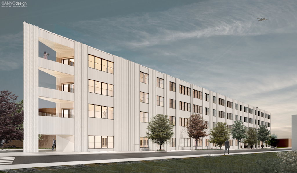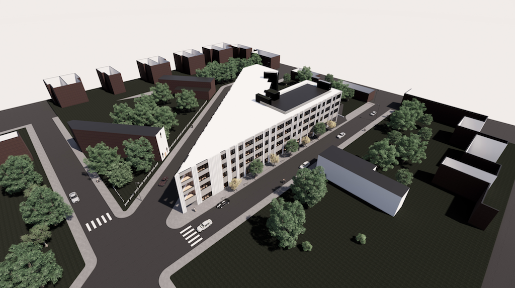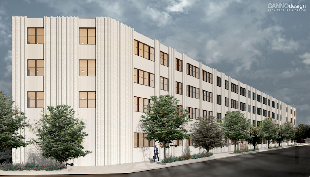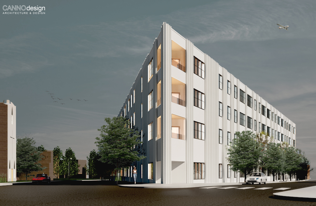 But the folks at Trinity Realty have a strong track record so we believe they’re onto something as they’re looking to redevelop this parcel into a four-story mixed-use building. The project is designed by Canno and calls for 72 apartments over a fresh food store, with 52 underground parking spots. Unlike some other projects we’ve seen that have utilized the fresh food store zoning bonus, this project will have a generous commercial space for said business, with over 16K sqft of retail on the first floor. Whatever business eventually opens here, they’ll have the pleasure of operating out of a very nice looking building. Here are some renderings, thanks to the project’s Civic Design Review application.