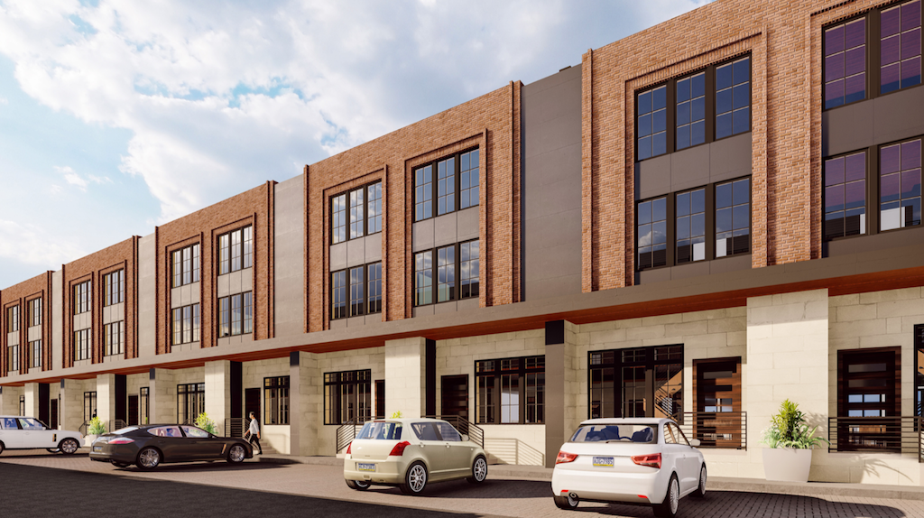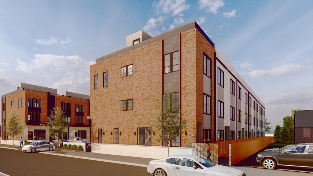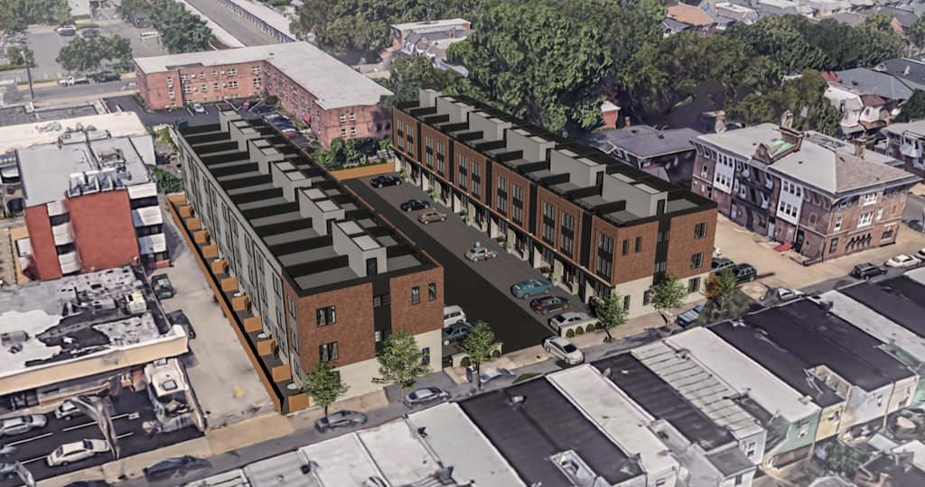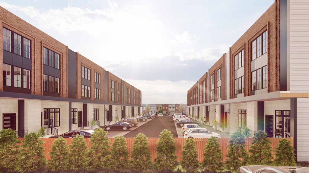 Since we’re writing about it, you’ve probably figured out that this won’t remain the case for much longer. Developers are stepping in to buy this property and are proposing something rather different than a plumbing supply business. Instead, the proposal calls for a 22 unit town home development. The homes will be arranged in two rows perpendicular to 18th Street, with a drive aisle between them. Check out these renderings which we grabbed from the project’s CDR packet– Design Blendz did the architecture work, making their second Naked Philly appearance this week.