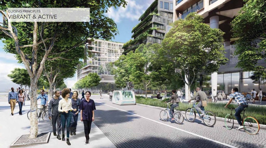 4,000 new residential units will join millions of square feet of office, lab, and manufacturing space, along with ample retail and hospitality functions. This plan – which features that tidy $6 billion price tag – divides 1,200 acres into several different districts, each with its own distinct function and design. Additionally, a set of guiding principles were created to help guide the focus of the development: Inclusive & Welcoming, Connected & Multimodal, Vibrant & Active, Equitable Growth & Quality Jobs, and Innovative & Resilient. Honestly, who’s arguing with any of these principals?