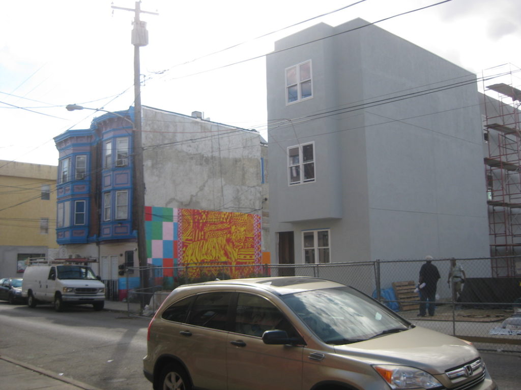 In other neighborhoods, we've gotten aggravated at the sight of a mere stucco bay window. But we can only recall a handful of other examples of an entire new construction building blandly wrapped in one color of stucco. We wonder, does a similar fate await the foundation just to the north?