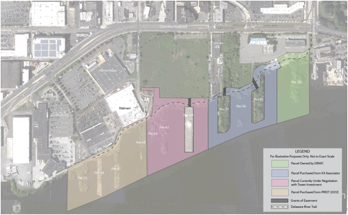 A press release came across our desk today, sharing the good news that Natural Lands Trust, in partnership with the Delaware River Development Corporation, recently purchased an important swath of land adjacent to the Delaware River. The purchase covers a hundred feet of land, Pier 56, and acres of adjacent water rights, all located behind the Sheetmetal Workers building just south of Washington Avenue.