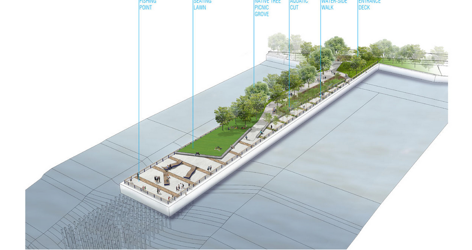 Pier 53, which was completed last year, anchors the northern end of the trail. Pier 68, currently under construction, will sit at the southern end. According to DRWC, this pier, designed by Studio Bryan Hanes, will be "a park for passive recreation, as well as for fishing and up-close observation of the highly tidal nature of the Delaware River." It will also have magnificent views of a Wal-Mart, which will surely encourage people to turn their attention toward the river.