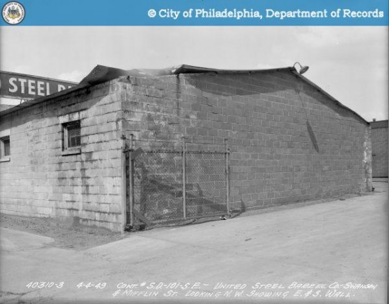 In the late 19th century, the Irish and Italian immigrant families that populated the Pennsport neighborhood were an engine for the Industrial Revolution. The image taken here from the G.W. Bromley’s 1895 Philadelphia Atlas shows a dense cluster of refineries, foundries, mills and rails where Marshalls, Lowes, ShopRite and Modell’s currently reside. The 1895 Atlas shows that the building just left of center held a number of occupants, with H & N O’Donnell Cooperage Company largest among them.