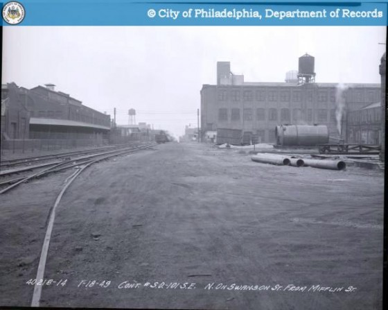 The Department of Records photos above show the structure to the left in 1949, several decades before the arrival of Target. The Continental Distribution Warehouse (now Shoprite) is seen to the right. The train tracks running between them on Swanson Street remain a constant threat to your tires even today.