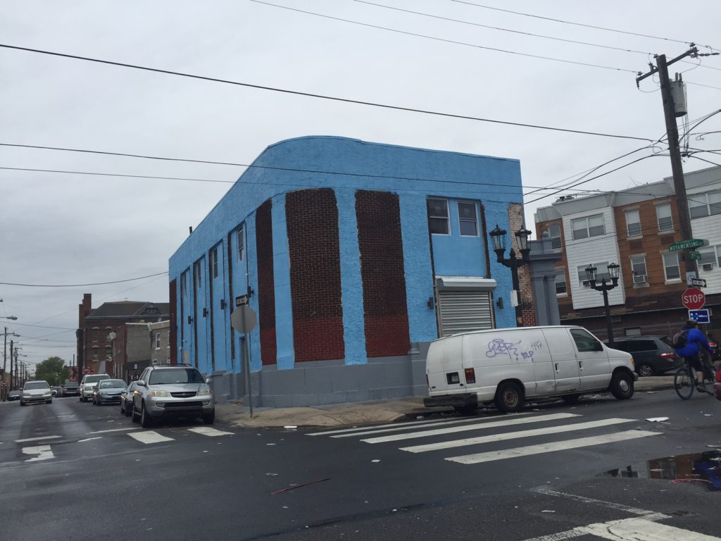 The current owners have done some significant work to the building and according to permits it's now a mixed-use property with a fish store on the first floor and two apartments above. Perhaps to evoke an under the sea vibe, they've applied a coat of turquiose paint to the building. In an effort to secure the location, they've added a bunch of metal security gates, replacing old window openings and plywood. And for reasons we're not sure we understand, they've sealed up the original entrance to the building. Check it out: