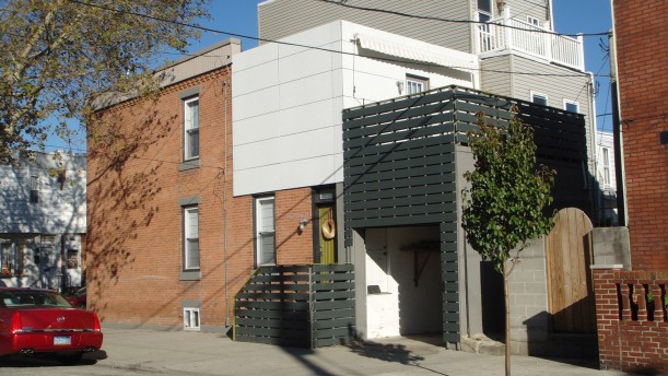 We drove by something interesting in South Philly yesterday, which we now have learned is Jason C. Christiansen’s old home at 152 Tree Street. Christiansen and his wife bought the rehabbed building in 2002, but wanted to “change some things to suit our style a bit more,” said Christiansen, an AIA member who now works for Revision21 doing architecture visualization work and small design projects on the side. “We started in Queen Village and kept going south until we could afford something,” laughs Christiansen recalling how he ended up in South Philly. The renovations on the two-story 1100-square-foot three-bedroom home began in 2006.