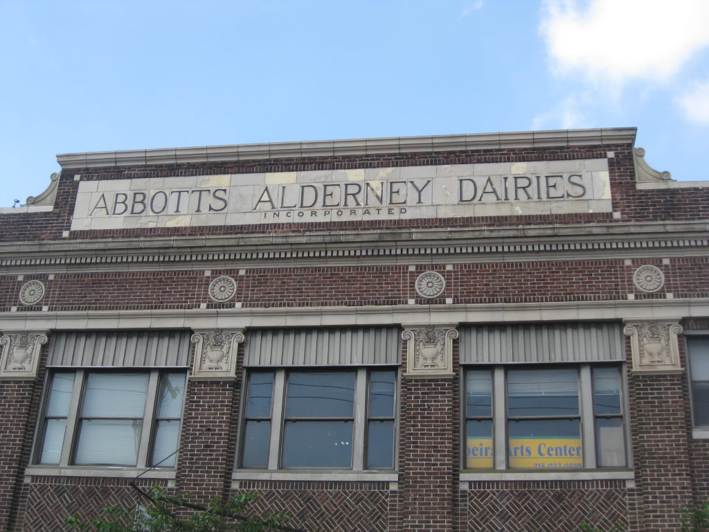 According to the PHMC Cultural Resources Database, this building was constructed in 1921, and designed by W. Timm. And while it was a very impressive home for Abbott’s Alderney Dairies, it apparently wasn’t their only location in town. A City Paper story from last year (from our old friend GroJLart) tells the tale of another (and also very cool looking) Abbott’s building at 30th & Chestnut. According to that story, Abbott’s consolidated all their operations at 7th & Packer back in 1964, meaning this structure has stood for nearly fifty years after outliving its original use. And we must say, the outside of the building has held up remarkably well.