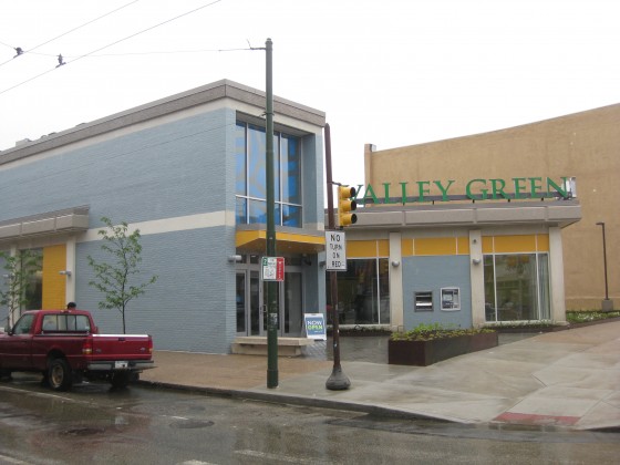 On June 10th, Valley Green Bank’s third branch officially opened its doors for customers. Metcalfe Architecture and Design did a bang-up job on the building, bringing new personality, color, and light to an already unique work of architecture. And apparently the bank was easy to work with, as Alan Metcalfe said in a press release “The Bank gave us the freedom to reinvent how to modernize a structure within the context of the neighborhood’s sensibilities.” Check out a couple more shots of the structure: