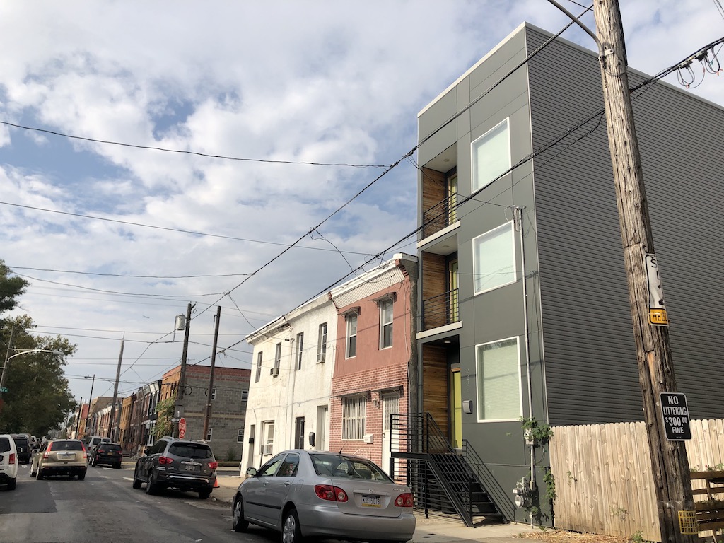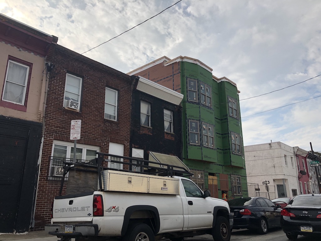 Meanwhile, the homes across from Mifflin Square which we covered earlier this summer are progressing. Even though they rise three stories on a block dominated by two-story homes, they fit the context of their surroundings better than the home in the image above. Not that we consider that to be especially important on South Philly row home blocks, but it’s true nevertheless.