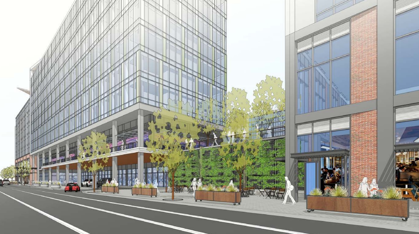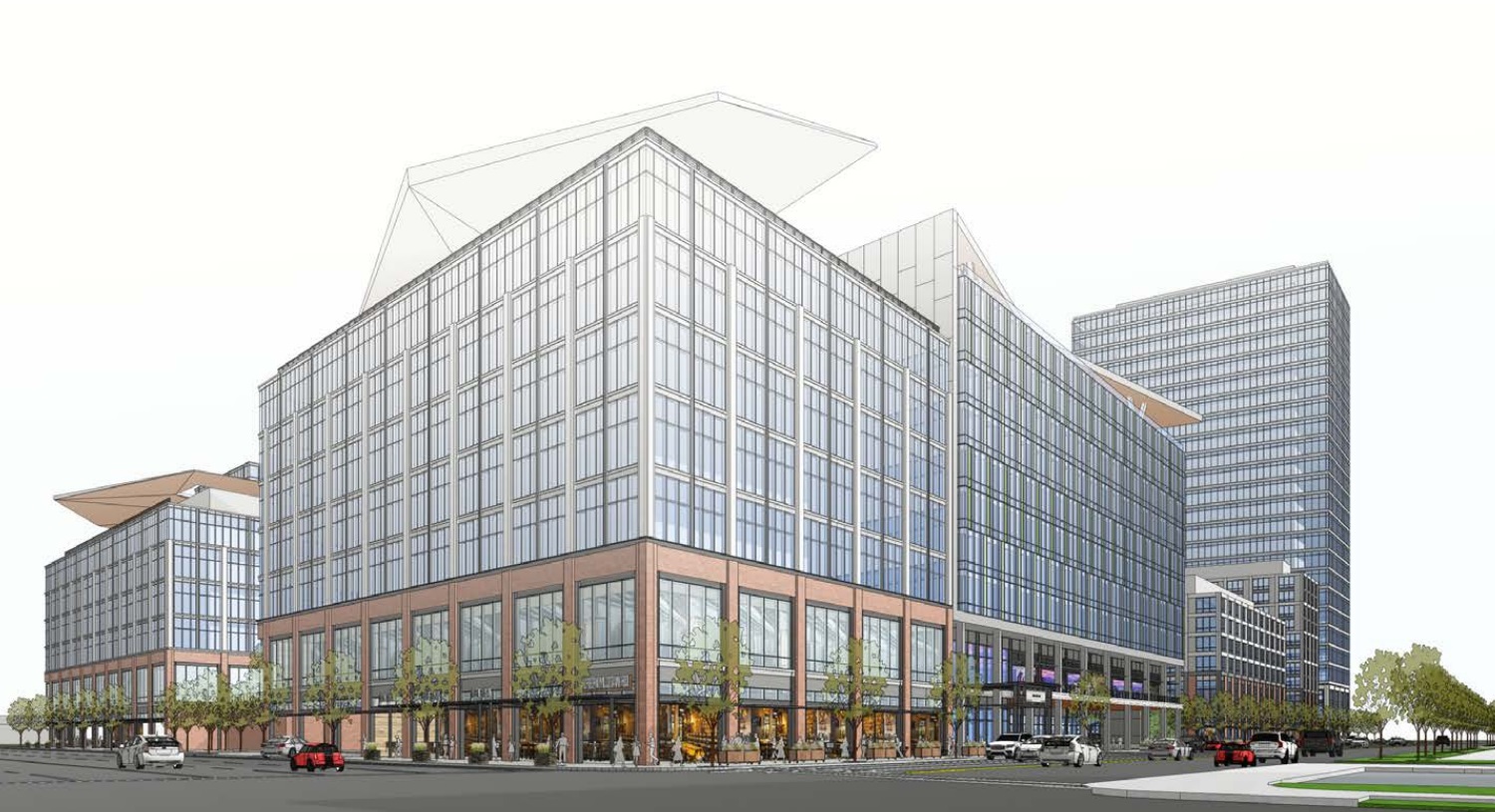 As you may have noticed on the above aerial view, there was also a proposal from several years back for Pattison Place, a mid-rise office building at the north end of the sports complex. As you may have guessed, this out-of-the-way office proposal from early 2019 has seemingly fizzled out during the work-from-home shift during the last few years. It’s a shame, because this modern tower designed by Beyer Blinder Belle and BLTa would have injected some life to the area during the typically desolate daytime hours. While not officially a dead project, there has been nary a word about it over the last few years.