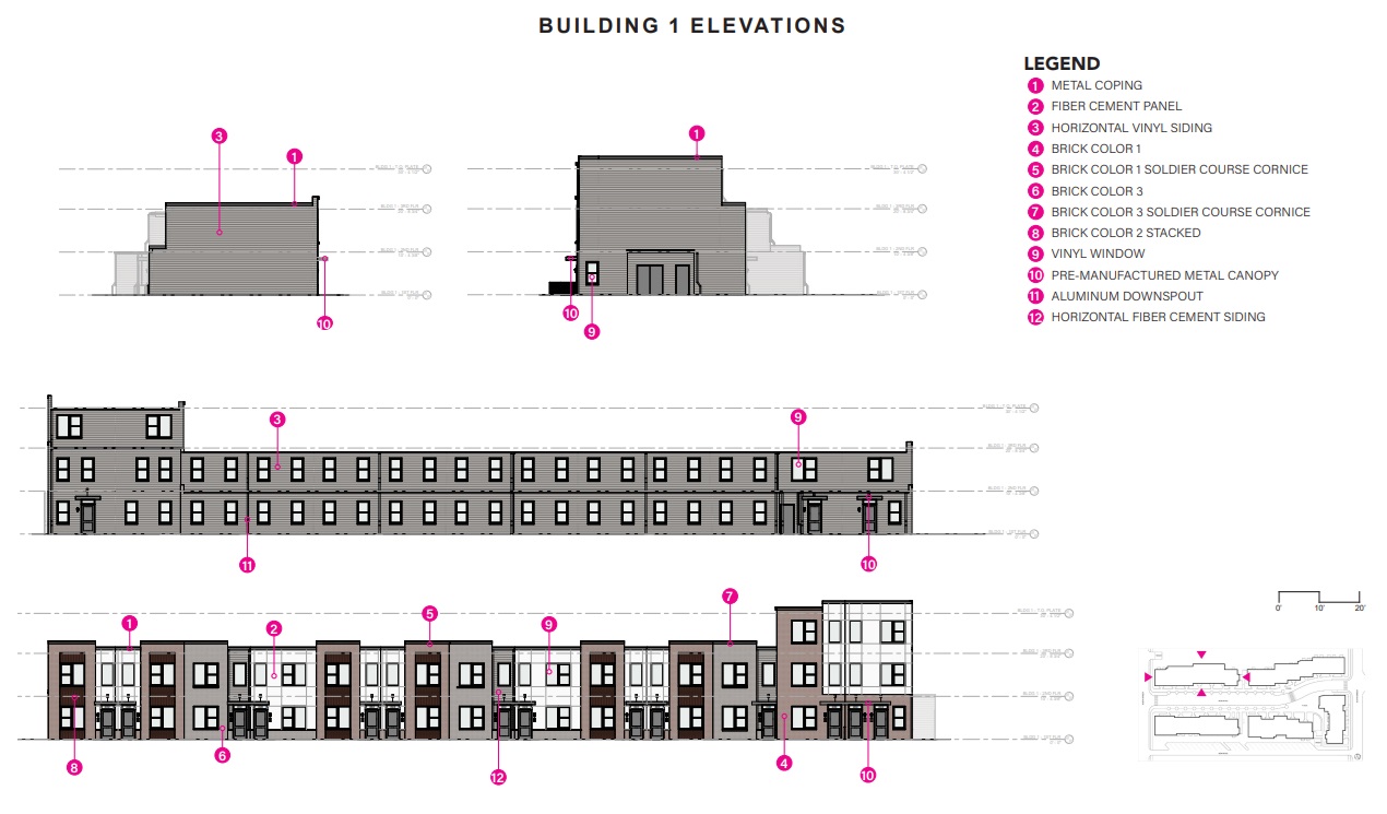 The designs from WRT are quite playful for a low-rise, modular building. Brick and paneling will predominate, with renderings suggesting pops of various colors across the doors of the buildings. Walkways and landscaping will further push the project’s goals to add connectivity and green space to the area, creating a place that’s both lovely and livable.