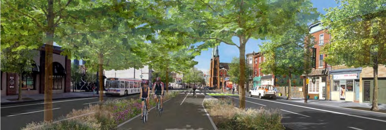 Spring Garden Street, while masquerading with a verdant name, is hardly the lush, landscaped thoroughfare that the title projects. From river to river, the street cuts through numerous neighborhoods, sometimes tree-lined, oftentimes barren of any flora at all. Nearly a decade ago, the seeds of the Spring Garden Street Greenway were sown, with plans to revamp the corridor while providing a key connection for bikers traversing the city. This vision would include landscaping, stormwater management, transit and pedestrian infrastructure improvements, in addition to a bike path down the median of Spring Garden.